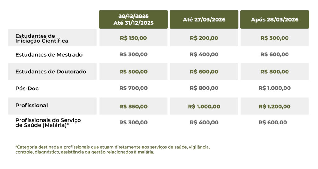 Pedidos de isenção ou desconto no valor da inscrição serão avaliados pela comissão organizadora. Para solicitações, escrever para o e-mail (mleventos@mleventos.com.br) justificando sua solicitação. Encorajamos especialmente participantes de qualquer nível que estejam sem projeto vigente.